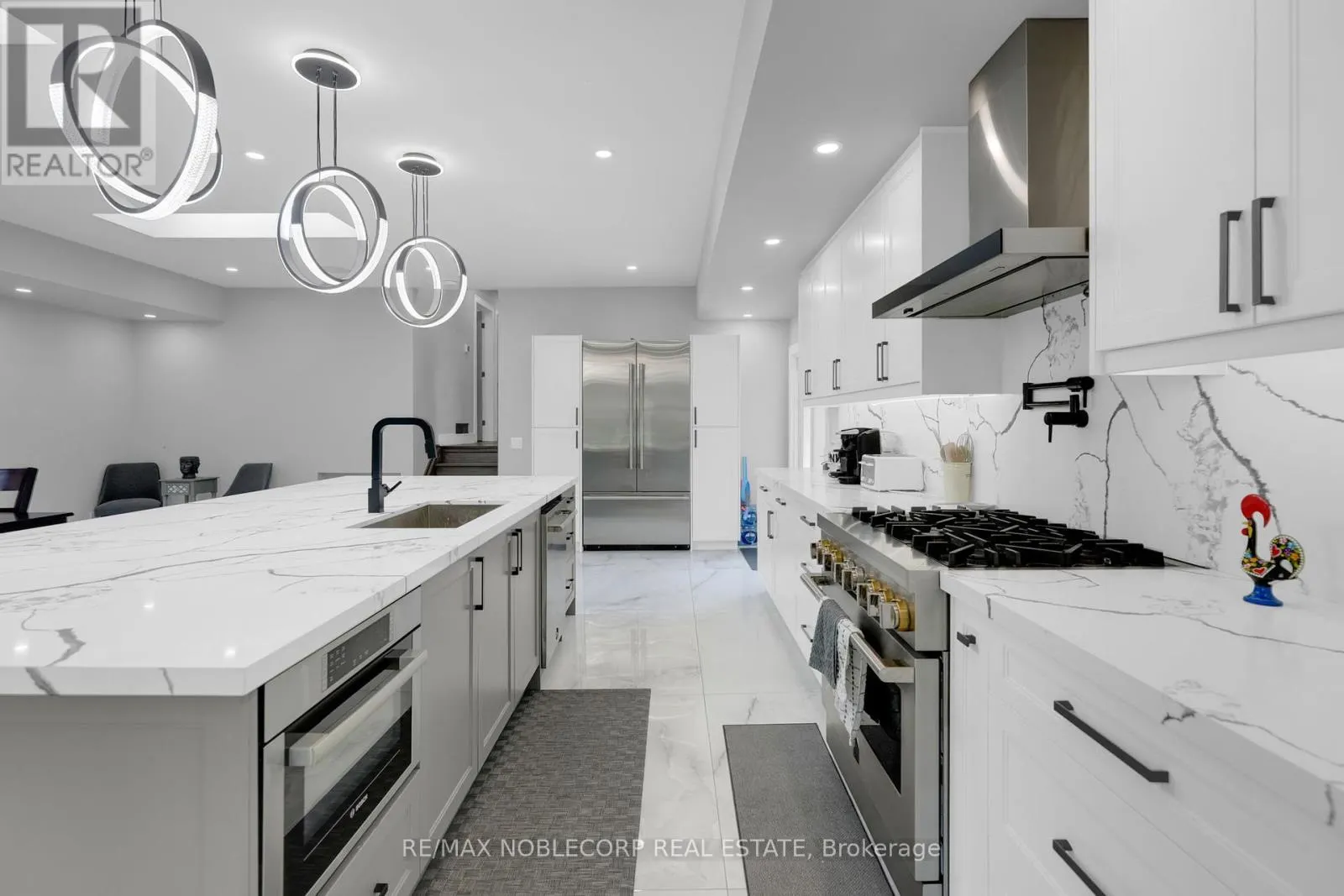 Stunning 3+1 Bedroom Backsplit on an Oversized Lot! Welcome to this beautifully updated and meticulously maintained backsplit, offering 3spacious bedrooms plus a versatile den and 2 full bathrooms. Situated on a very large lot, this home offers the perfect blend of luxury, space, and functionality f...or modern family living. The main floor is a showstopper, dedicated entirely to the gourmet kitchen and eat-in area, featuring a massive 12-foot island, high-end Jenn Air appliances, a 42" wide fridge, a wine fridge, and two skylights that flood the space with natural light. Entertain in style with built-in speakers and heated tile floors for ultimate comfort. The upper level boasts hardwood flooring throughout, while the lower level features durable and stylish vinyl plank flooring. Both bathrooms also include heated tile floors, adding a touch of luxury. Additional highlights include: Double car garage, Huge crawl space for ample storage, Beautiful backsplit layout for great flow and separation of space. Don't miss this opportunity to own a move-in-ready home that combines upscale finishes with practical features on an expansive lot! (id:10452)